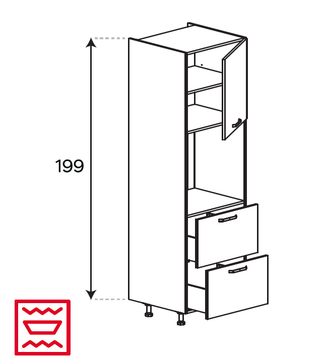Výška nezahrnuje nožky (10 nebo 15 cm). Vnitřní rozměr trouby: 59,5 cm