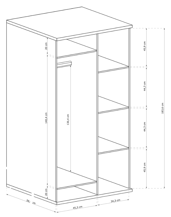 Nábytek řady Cali je vyrobený z lamino desek, ABS hran, lamel MDF a záda jsou z HDF. Má kovové úchytky a kování s tlumeným dovíráním dvířek. Skříňky mohou stát na nožkách.