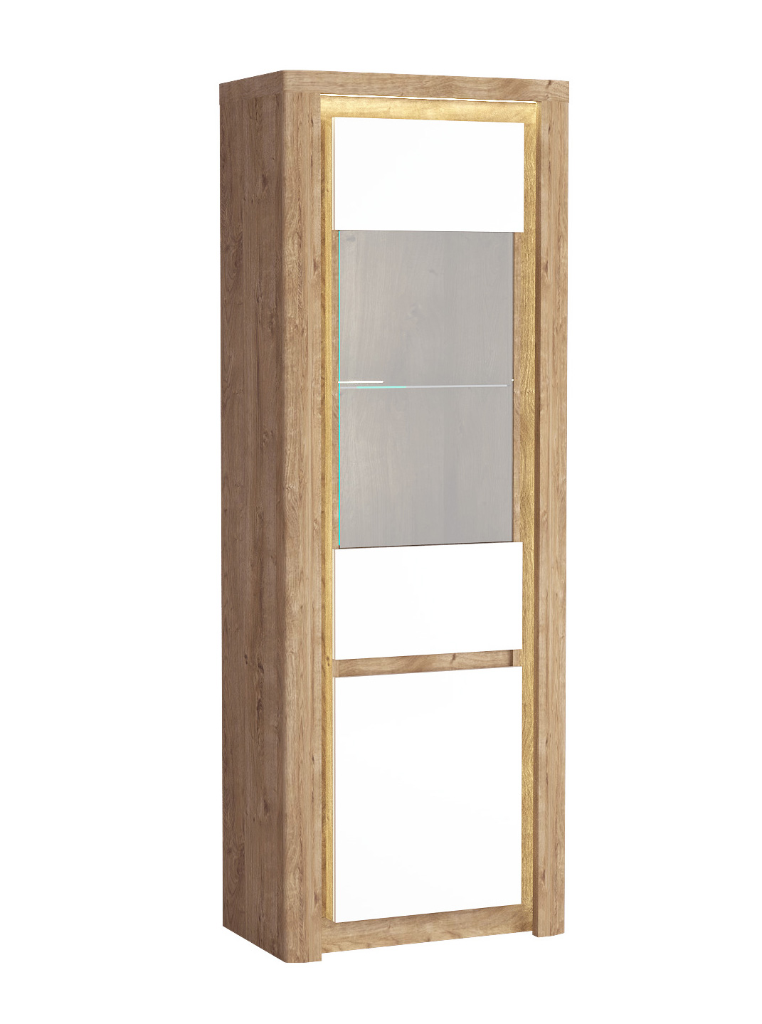 Moderní nábytek s LED podsvícením horních a bočních robustních desek vytvoří v místnosti hřejivou atmosféru. Skříňky se otevírají bez úchytek a mají systém tichého dovírání. Dvířka a zásuvky se tak zavírají bez zbytečného hluku. Přírodní barva dřeva v kombinaci s bílým leskem vás okouzlí. V této řadě nabízíme šatní skříně, vitríny, komody, stolky a další nábytek.