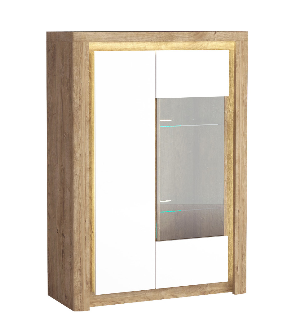 Moderní nábytek s LED podsvícením horních a bočních robustních desek vytvoří v místnosti hřejivou atmosféru. Skříňky se otevírají bez úchytek a mají systém tichého dovírání. Dvířka a zásuvky se tak zavírají bez zbytečného hluku. Přírodní barva dřeva v kombinaci s bílým leskem vás okouzlí. V této řadě nabízíme šatní skříně, vitríny, komody, stolky a další nábytek.