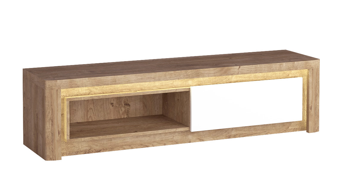 Moderní nábytek s LED podsvícením horních a bočních robustních desek vytvoří v místnosti hřejivou atmosféru. Skříňky se otevírají bez úchytek a mají systém tichého dovírání. Dvířka a zásuvky se tak zavírají bez zbytečného hluku. Přírodní barva dřeva v kombinaci s bílým leskem vás okouzlí. V této řadě nabízíme šatní skříně, vitríny, komody, stolky a další nábytek.
