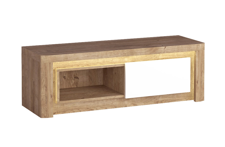 Moderní nábytek s LED podsvícením horních a bočních robustních desek vytvoří v místnosti hřejivou atmosféru. Skříňky se otevírají bez úchytek a mají systém tichého dovírání. Dvířka a zásuvky se tak zavírají bez zbytečného hluku. Přírodní barva dřeva v kombinaci s bílým leskem vás okouzlí. V této řadě nabízíme šatní skříně, vitríny, komody, stolky a další nábytek.