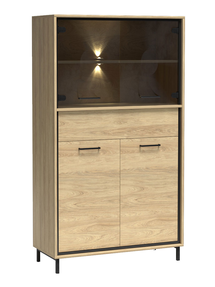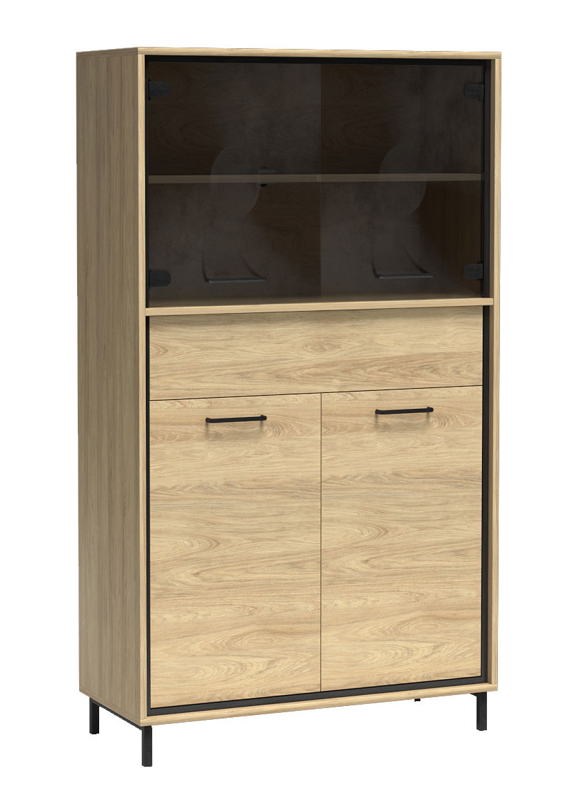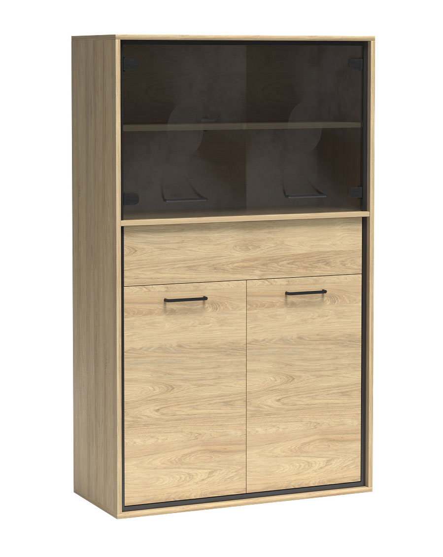 Řada Mediolan je vyrobená z lamino desek o tloušťce 16 a 32 mm, má ABS hrany, dřevěné části, záda z HDF a kovové úchytky s roztečí 128 mm. Dvířka jsou opatřená mechanismem pro tiché dovírání. Zásuvky jsou bez úchytek, otevírají se zmáčknutím (push to open) do plného výsuvu. Vitríny jsou vyplněné tvrzeným sklem. Nábytek můžete instalovat na černé nožky o výšce 10 cm.