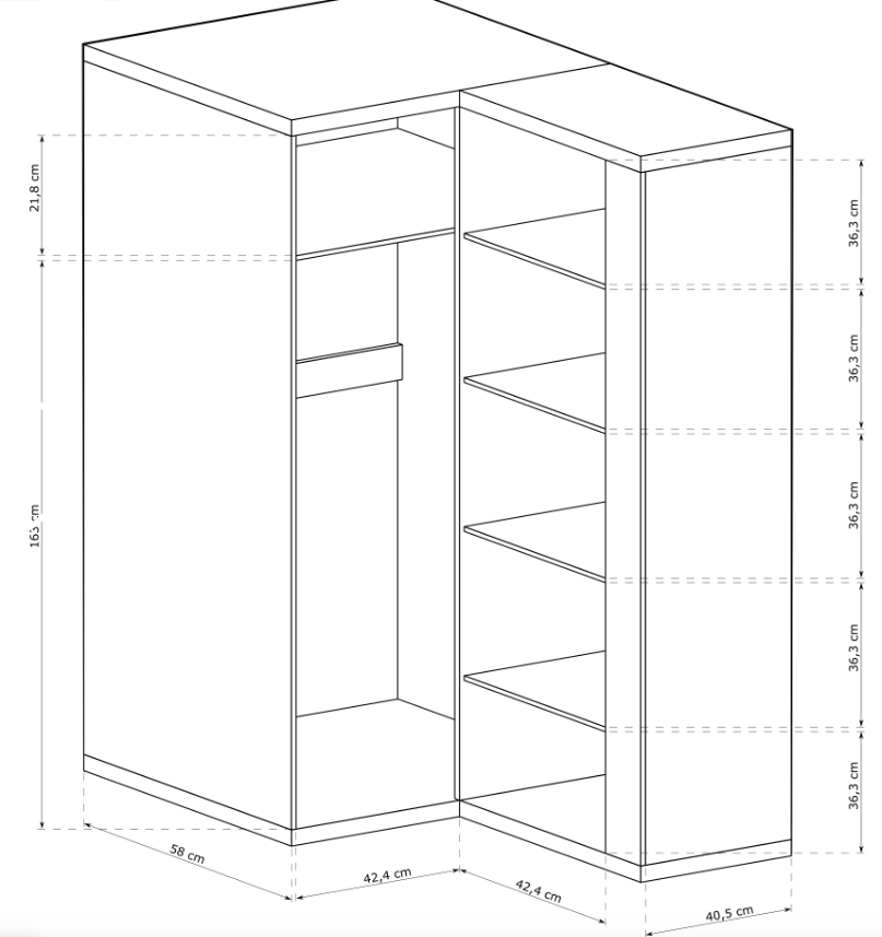 Výška je uvedena bez nožek. Podrobné rozměry jsou v galerii.