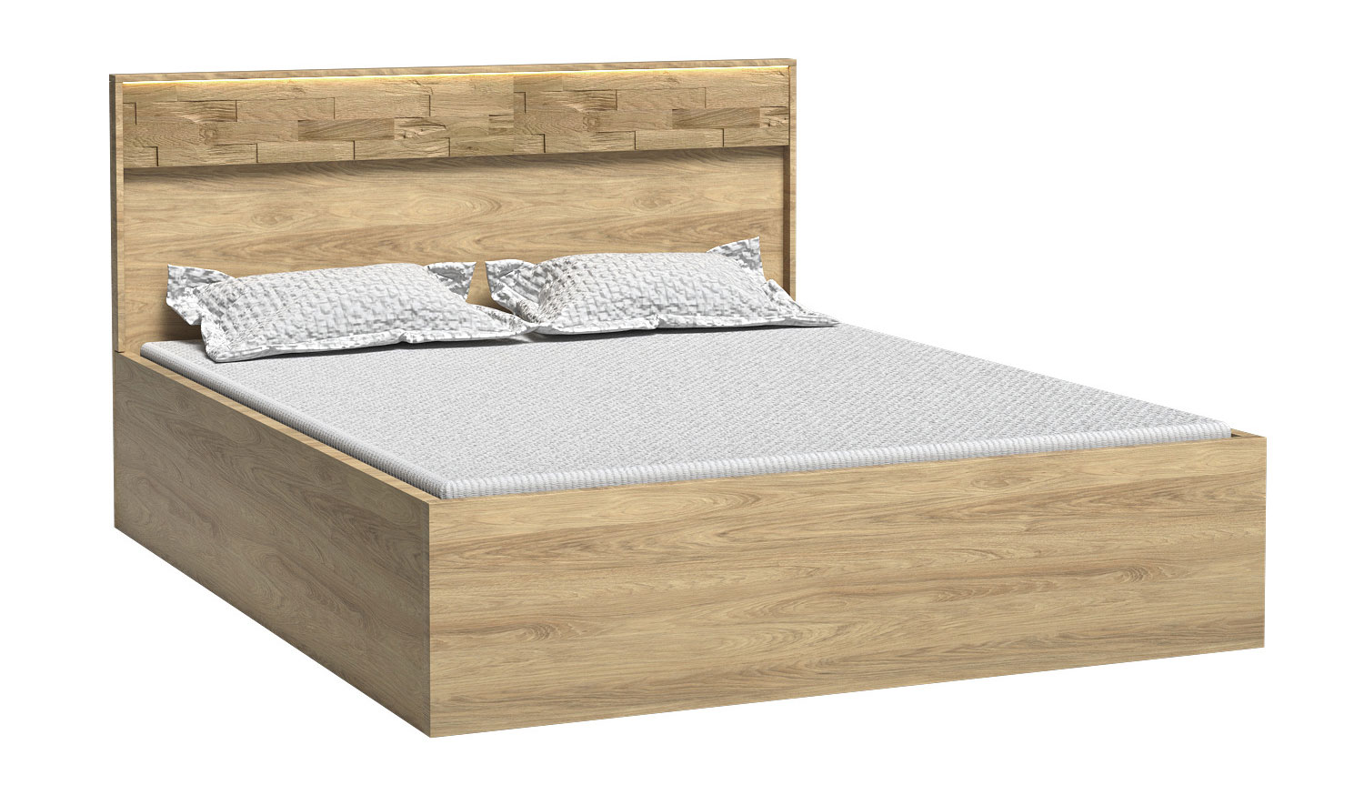 Teplé barvy s černými doplňky vykouzlí interiér v industriálním stylu. Hladká čela zásuvek můžete vyměnit za panel z dubového dřeva s ozdobným vzorem. Doplňkové LED osvětlení obohatí každý interiér. Vybírejte šatní skříně s posuvnými dveřmi, noční stolky i manželskou postel.