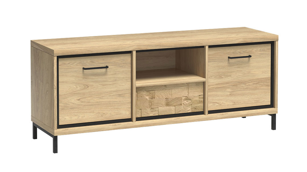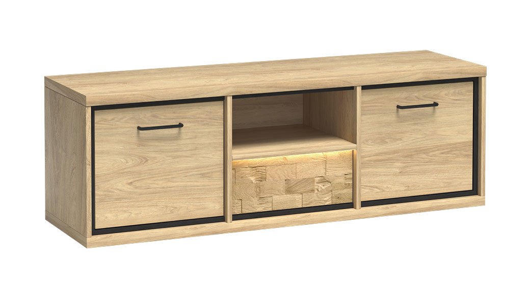 Teplé barvy s černými doplňky vykouzlí interiér v industriálním stylu. Hladká čela zásuvek můžete vyměnit za panel z dubového dřeva s ozdobným vzorem. Doplňkové LED osvětlení obohatí každý interiér. Vybírejte šatní skříně s posuvnými dveřmi, noční stolky i manželskou postel.