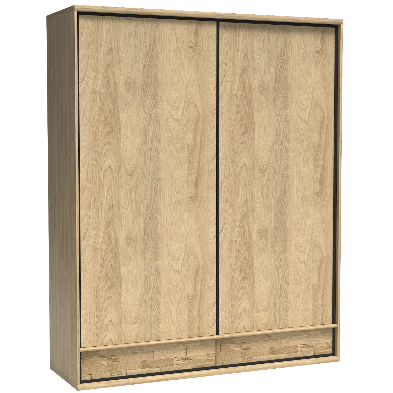 Teplé barvy s černými doplňky vykouzlí interiér v industriálním stylu. Hladká čela zásuvek můžete vyměnit za panel z dubového dřeva s ozdobným vzorem. Doplňkové LED osvětlení obohatí každý interiér. Vybírejte šatní skříně s posuvnými dveřmi, noční stolky i manželskou postel.