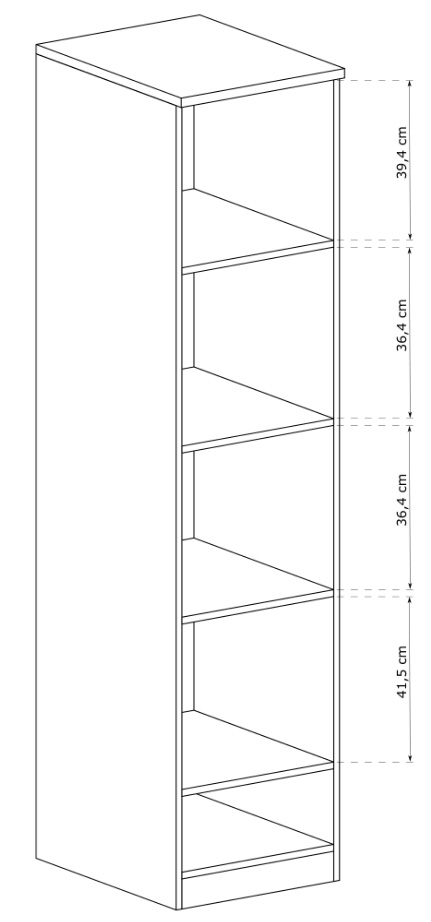 Série je vyrobená z lamino desek o tloušťce 16 a 32 mm, má ABS hrany, rám dvířek je z MDF a záda jsou vyplněná HDF. Kovové úchytky mají rozteč 96 mm.