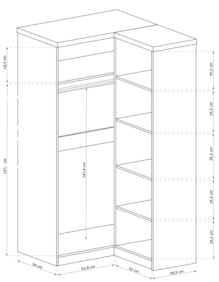 Série je vyrobená z lamino desek o tloušťce 16 a 32 mm, má ABS hrany, rám dvířek je z MDF a záda jsou vyplněná HDF. Kovové úchytky mají rozteč 96 mm.