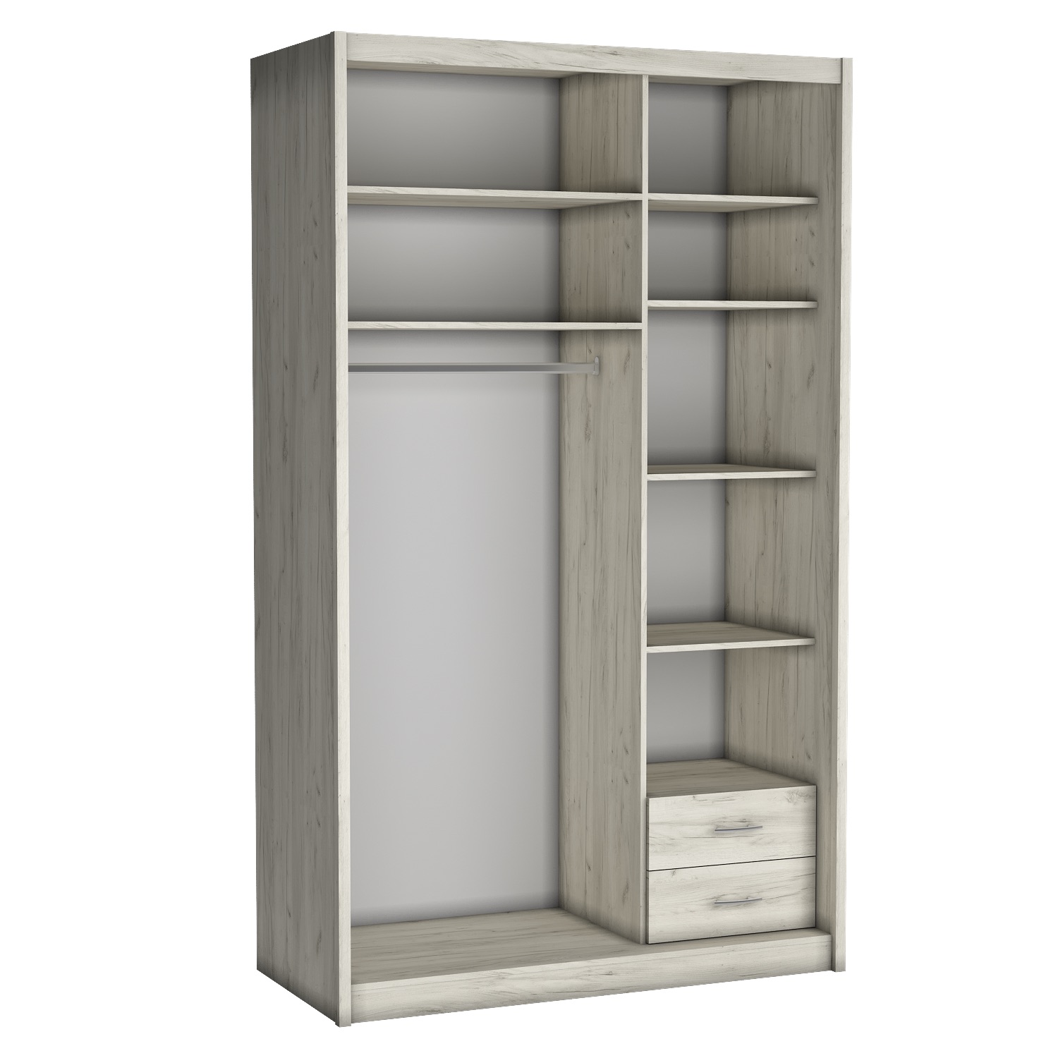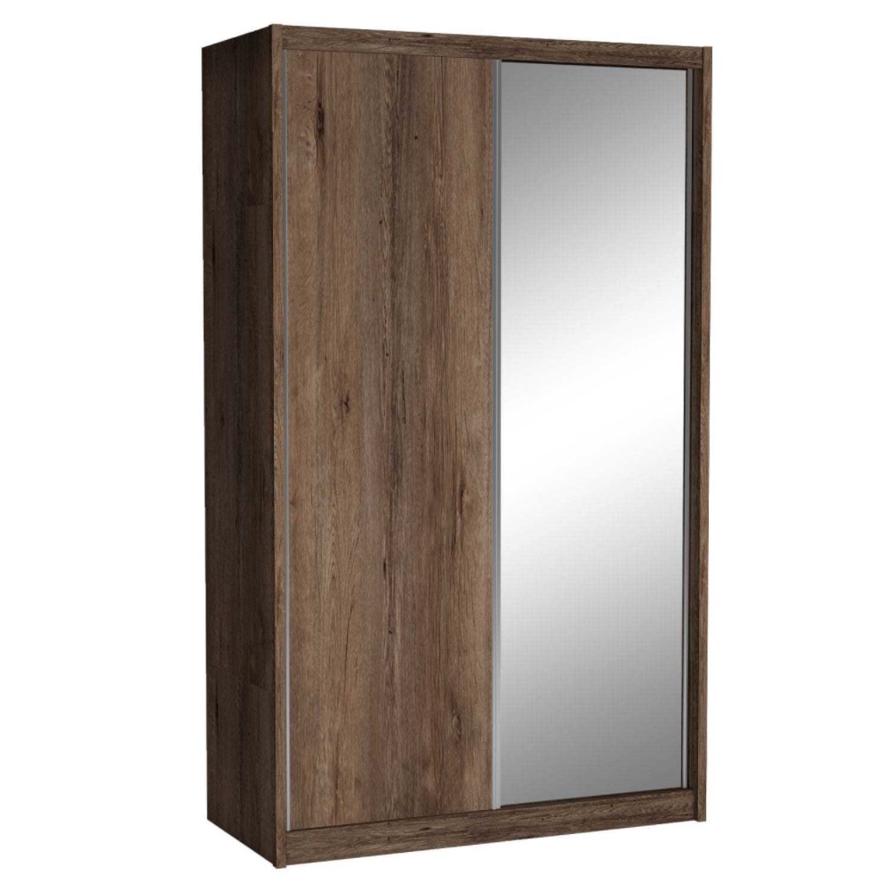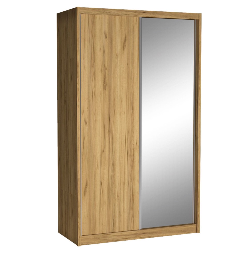 Menší šatní skříň s posuvnými dveřmi a zrcadlem, která má dostatek prostoru a hodí se všude tam, kde není moc místa. Je dostupná v různých barevných provedeních, aby se dala dosadit do každého interiéru. Materiály: Lamino desky s ABS hranami, záda HDF, kovová šatní tyč