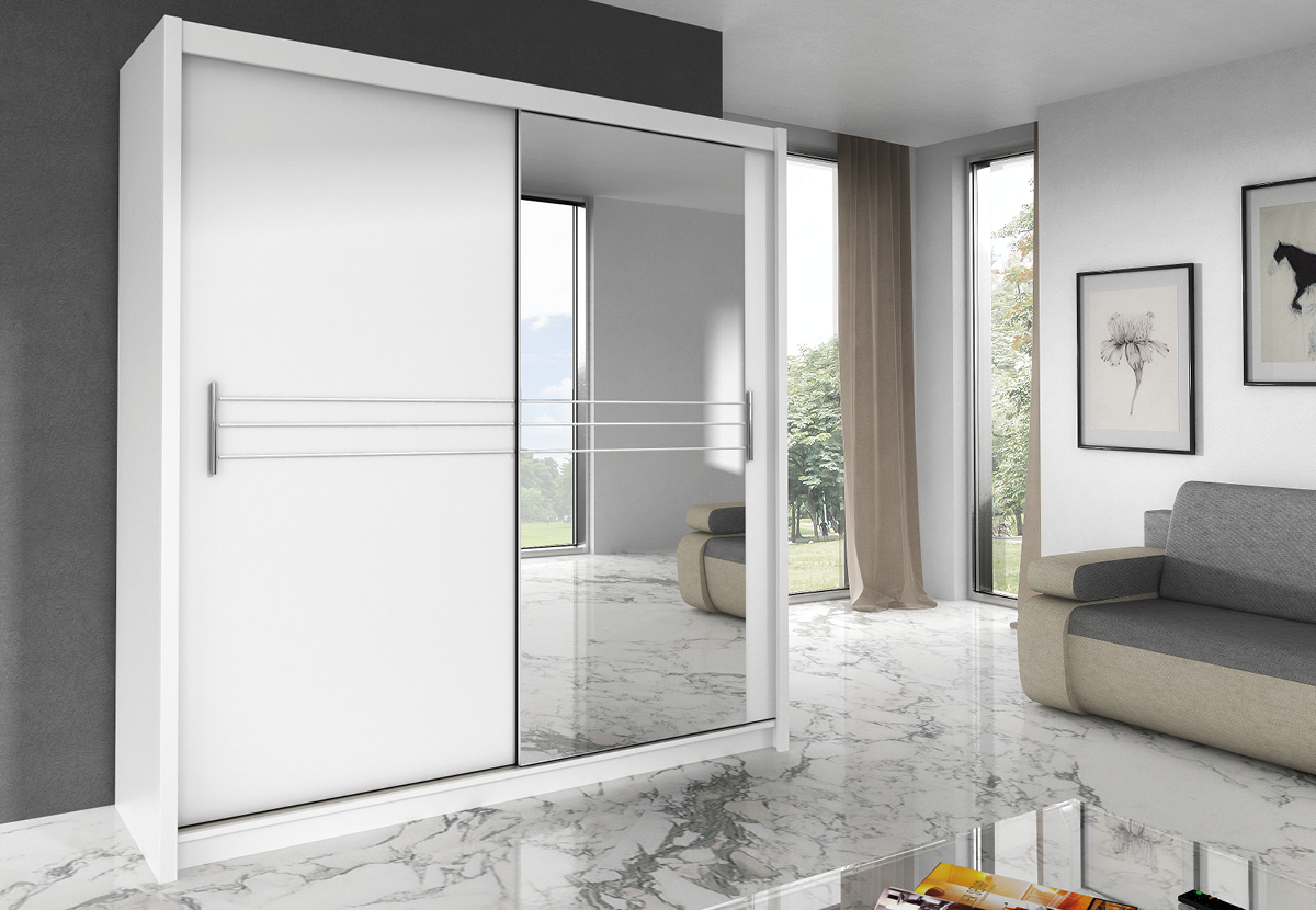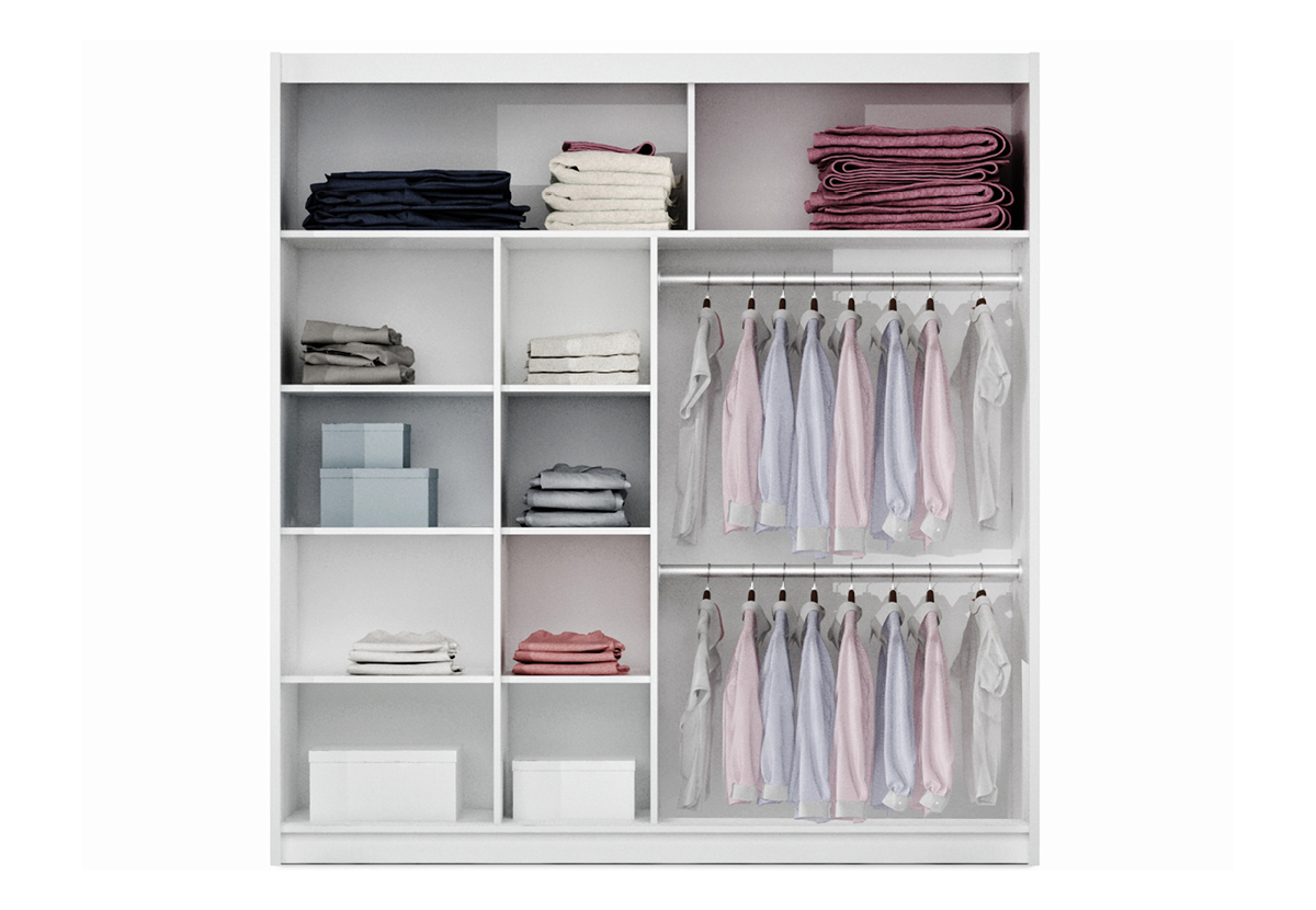 Lamino, zrcadlo, dvě šatní tyče, dostatek polic