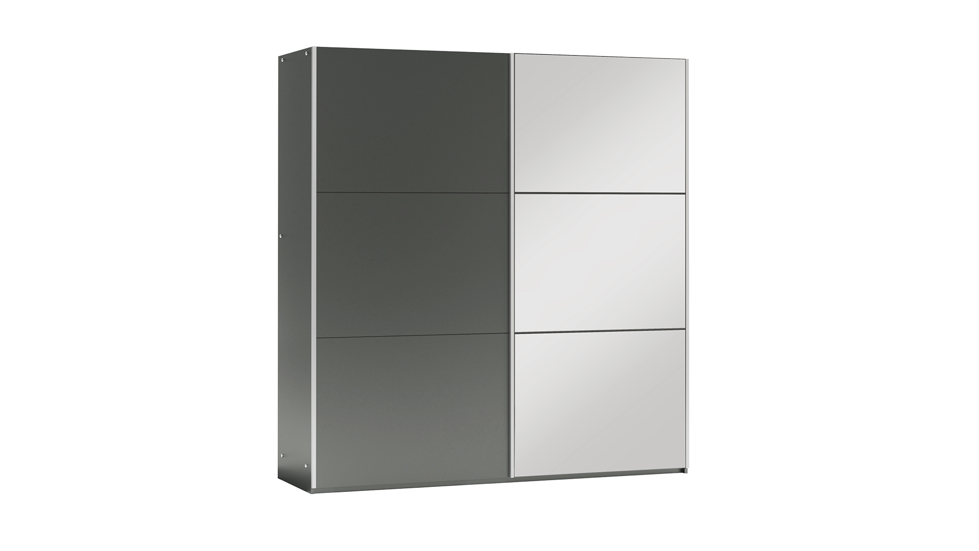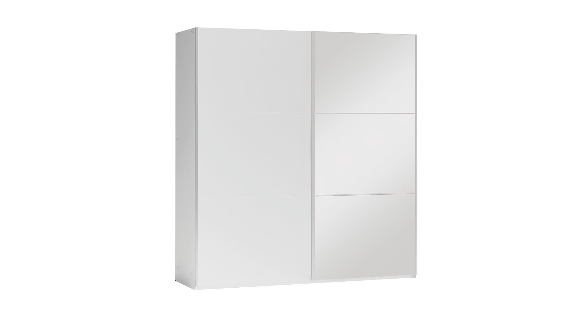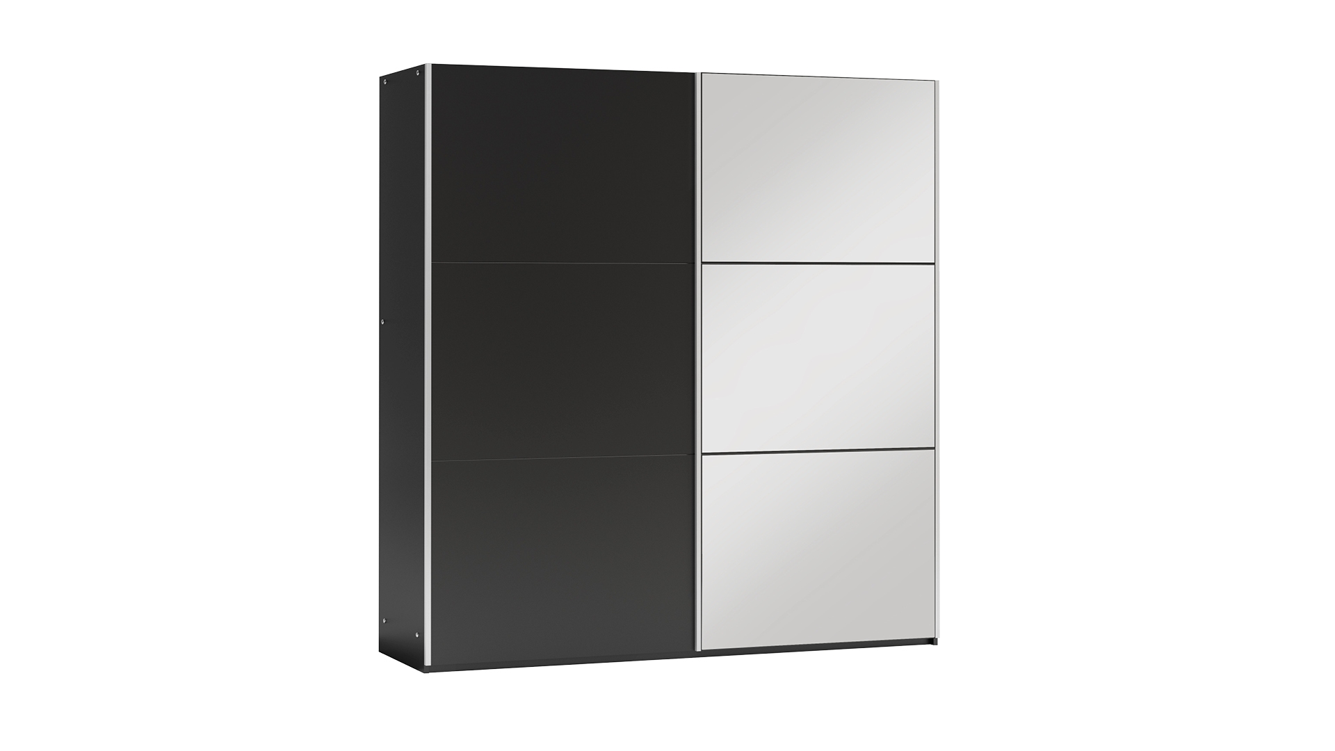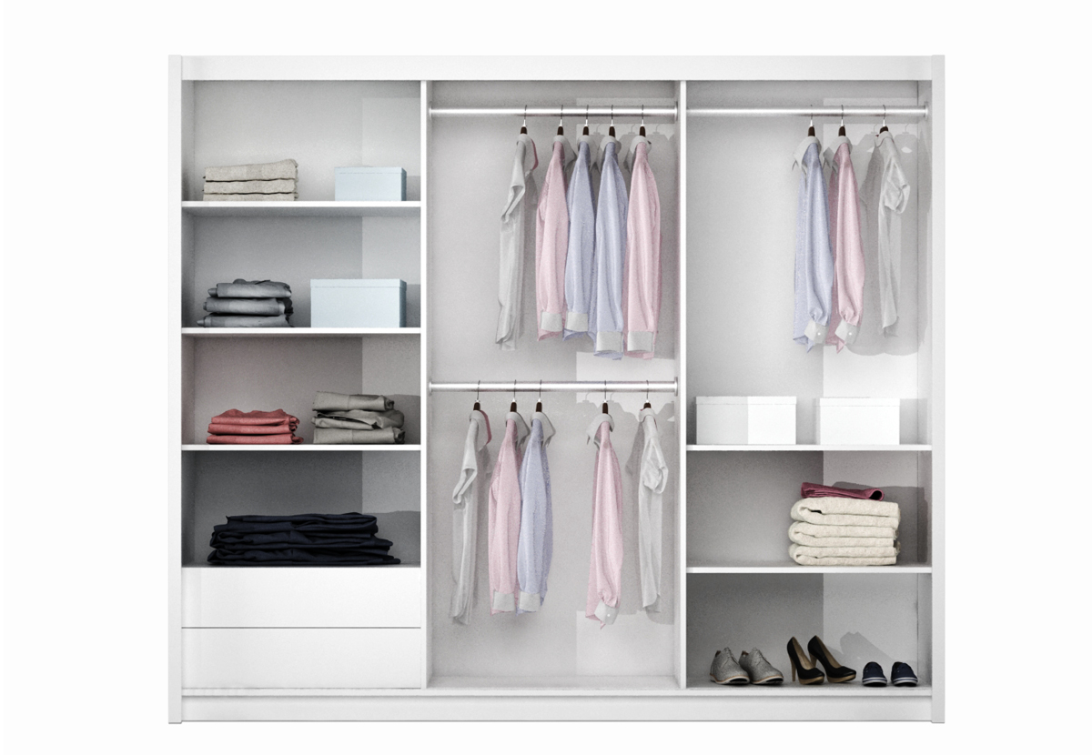 Lamino, kování HÄFELE, zrcadlo, tři šatní tyče, dvě zásuvky a dostatek polic.
