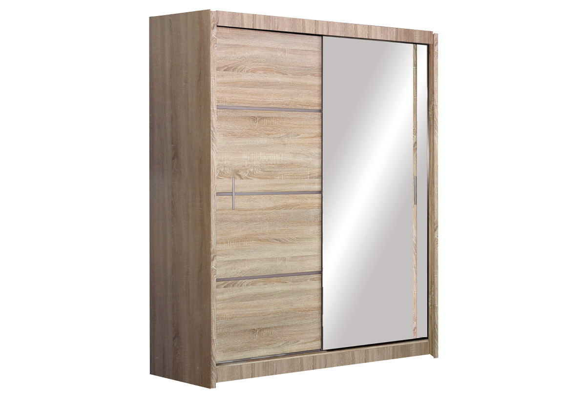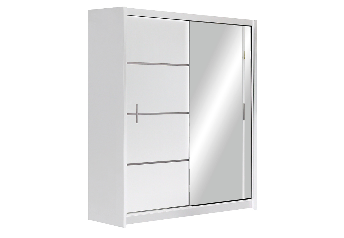 Lamino, hliníkové kolejnice, zrcadlo, dvě šatní tyče, dostatek polic.