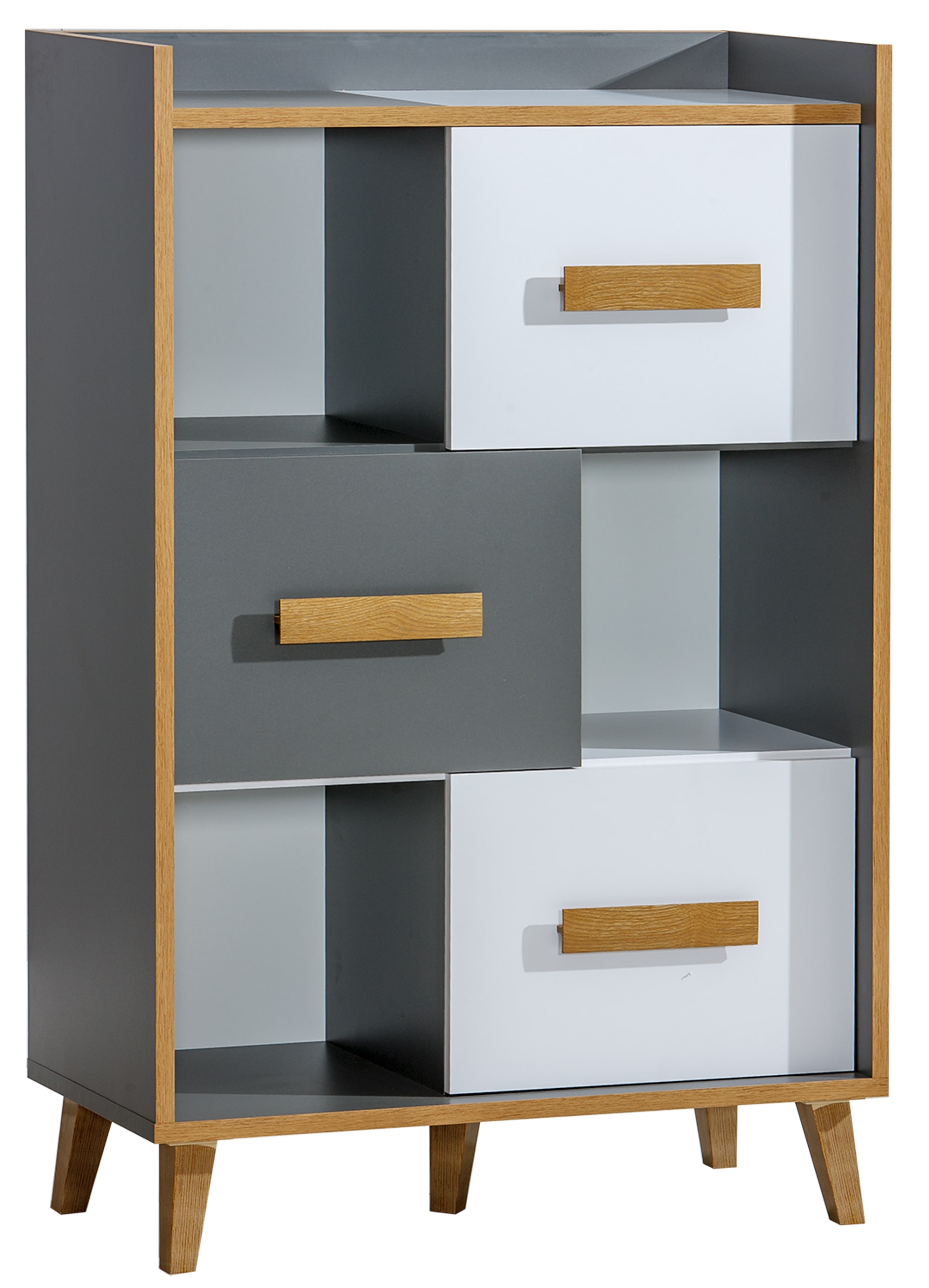 Netradiční kolekce Vero je primárně určena do pokojů pro děti a studenty, ale dá se použít i do obývacího pokoje. Nábytek stojí na nožkách, což oceníte hlavně při úklidu. Dub Riviera, Antracit a bílá barva – Opravdu hodně svérázná kombinace. Materiály: LTD, ABS