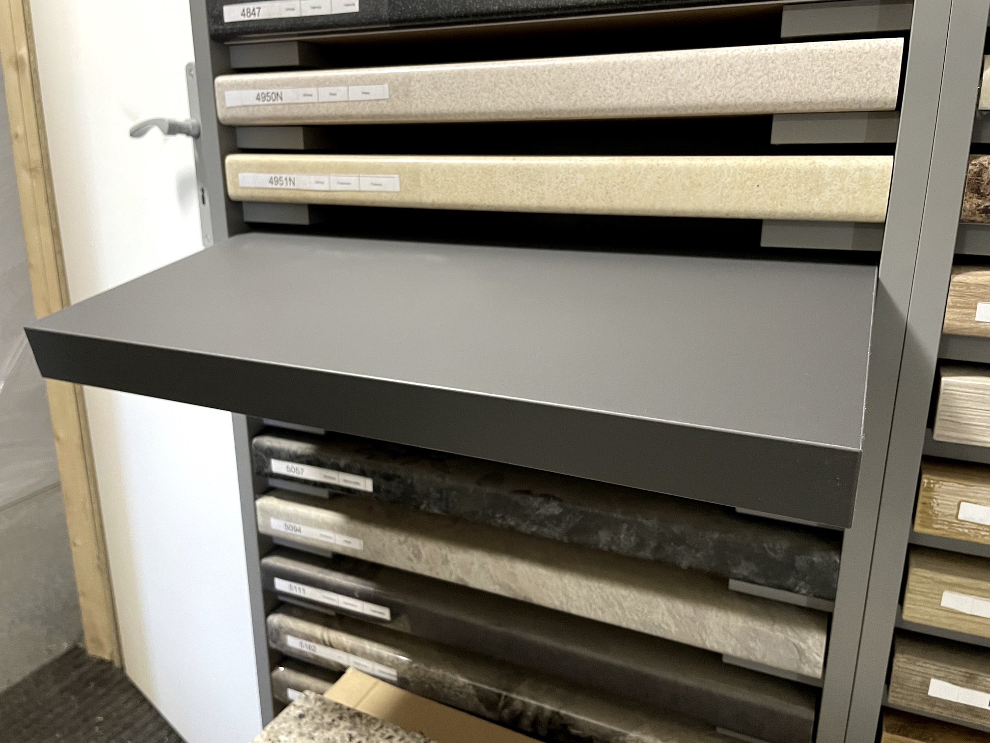 Prémiové pracovní desky nemají žádné zaoblení (nos). Jsou zakončeny PP hranou 1,2 mm. Na první pohled působí velmi moderně.
