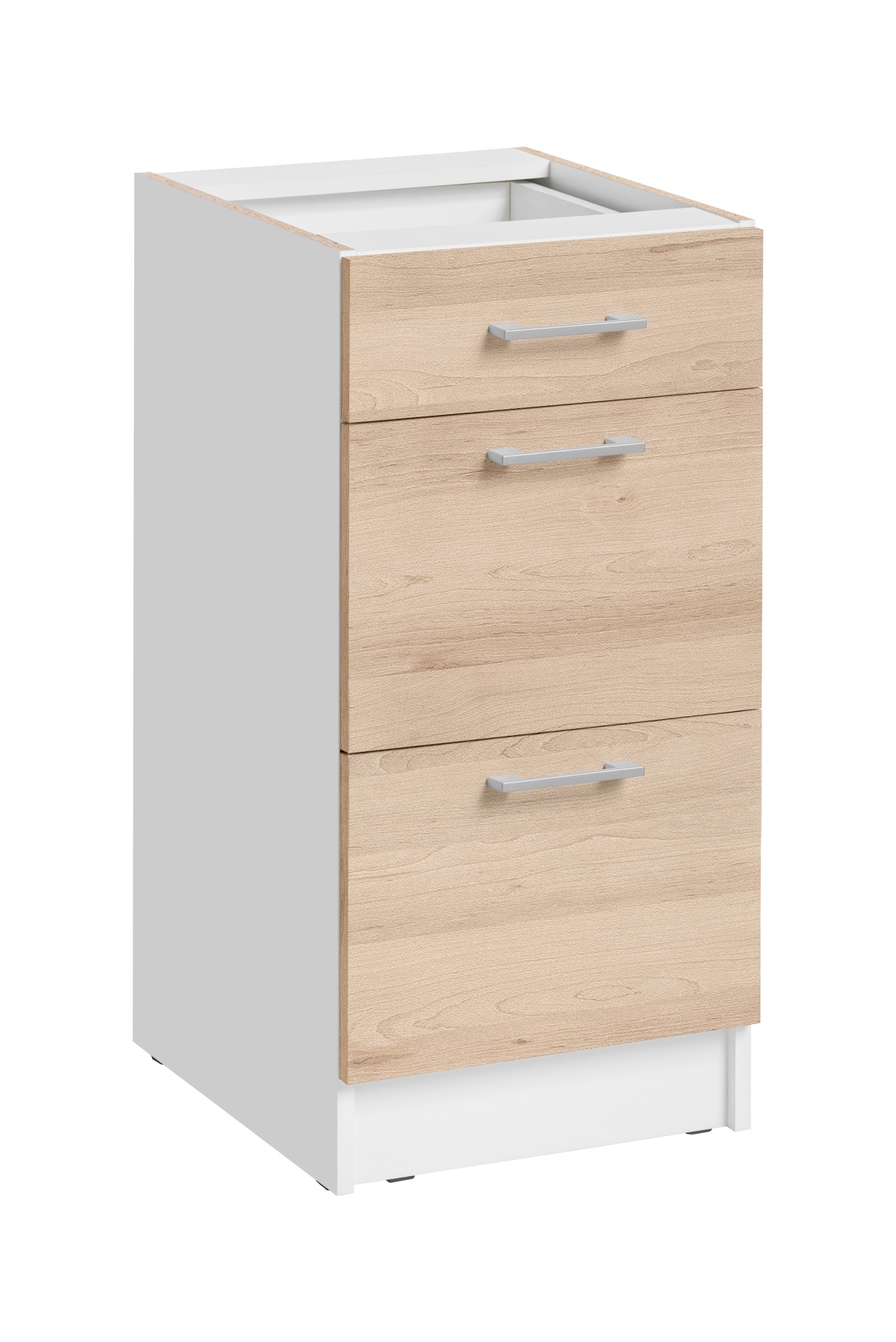 Cenově zvýhodněné kuchyňské sestavy Eko s pracovní deskou zdarma se výborně hodí do menších prostorů. Můžete si také sestavit vlastní rohovou kuchyni pomocí jednotlivých skříněk. Vybírejte z oblíbených dekorů dřeva a jednobarevných lesklých dvířek.