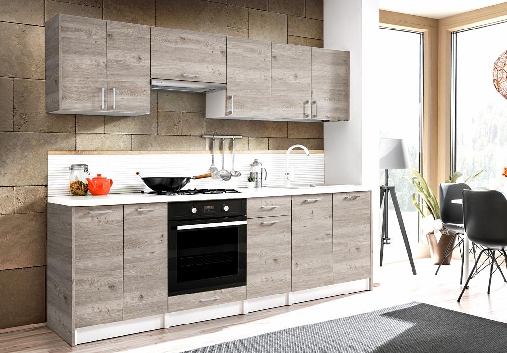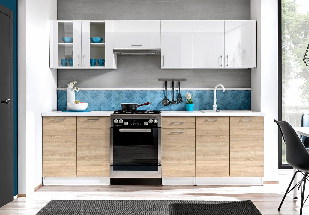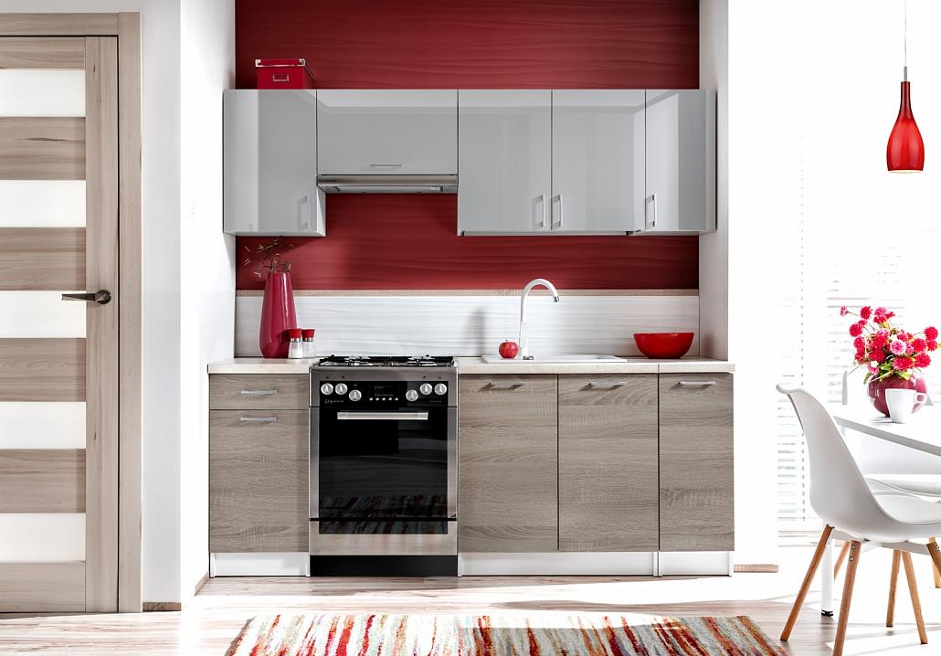 Cenově zvýhodněné kuchyňské sestavy Eko s pracovní deskou zdarma se výborně hodí do menších prostorů. Můžete si také sestavit vlastní rohovou kuchyni pomocí jednotlivých skříněk. Vybírejte z oblíbených dekorů dřeva a jednobarevných lesklých dvířek.