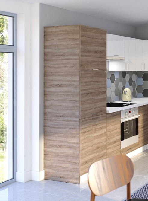 Cenově zvýhodněné kuchyňské sestavy Eko s pracovní deskou zdarma se výborně hodí do menších prostorů. Můžete si také sestavit vlastní rohovou kuchyni pomocí jednotlivých skříněk. Vybírejte z oblíbených dekorů dřeva a jednobarevných lesklých dvířek.