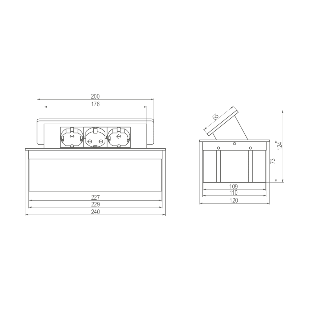 3x zásuvka, kabel 1,5 m, max 3600 W, rozměry v galerii