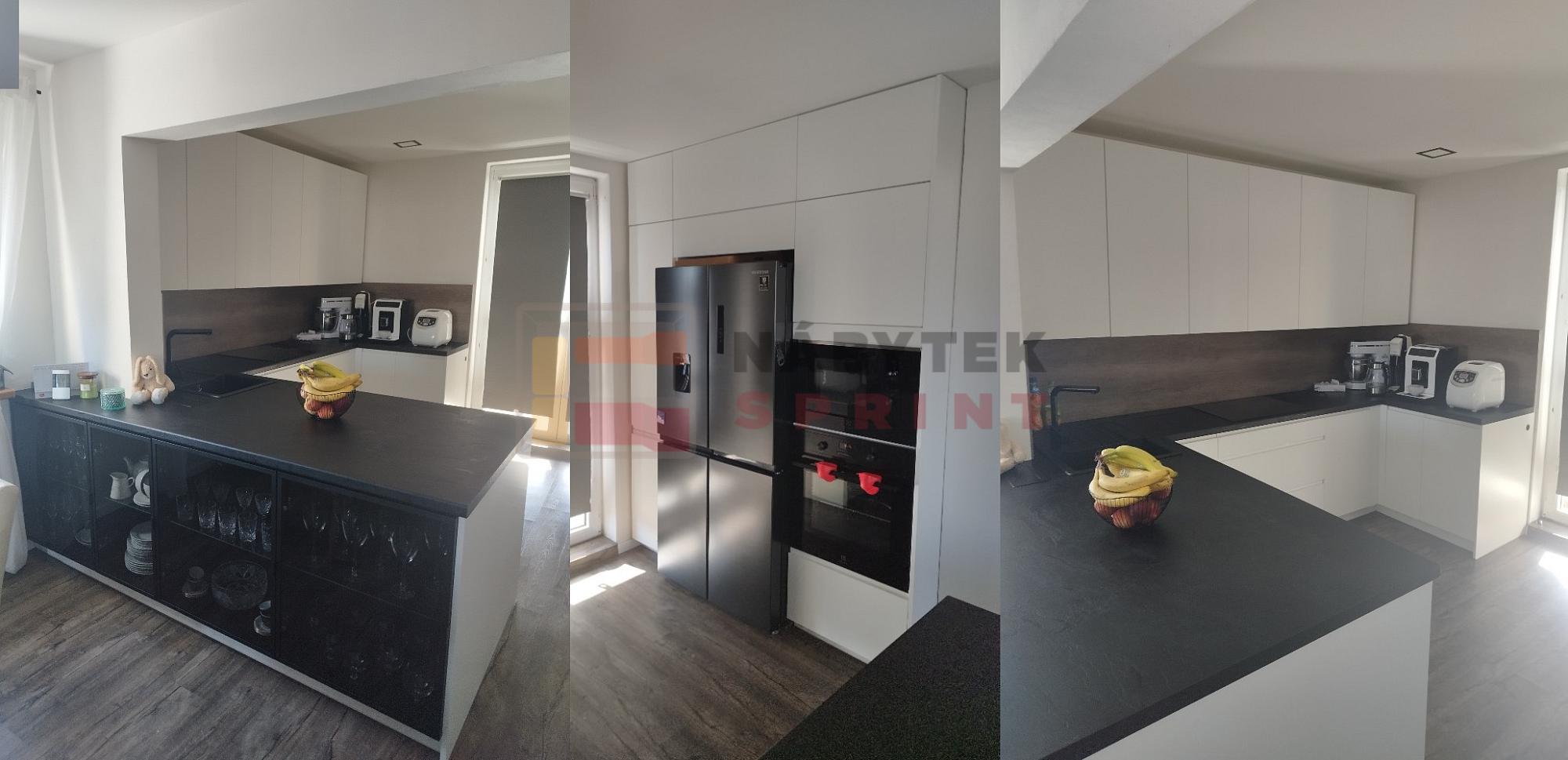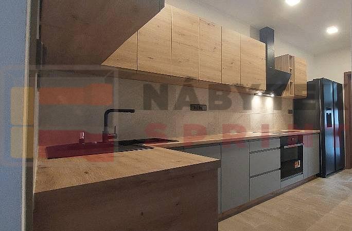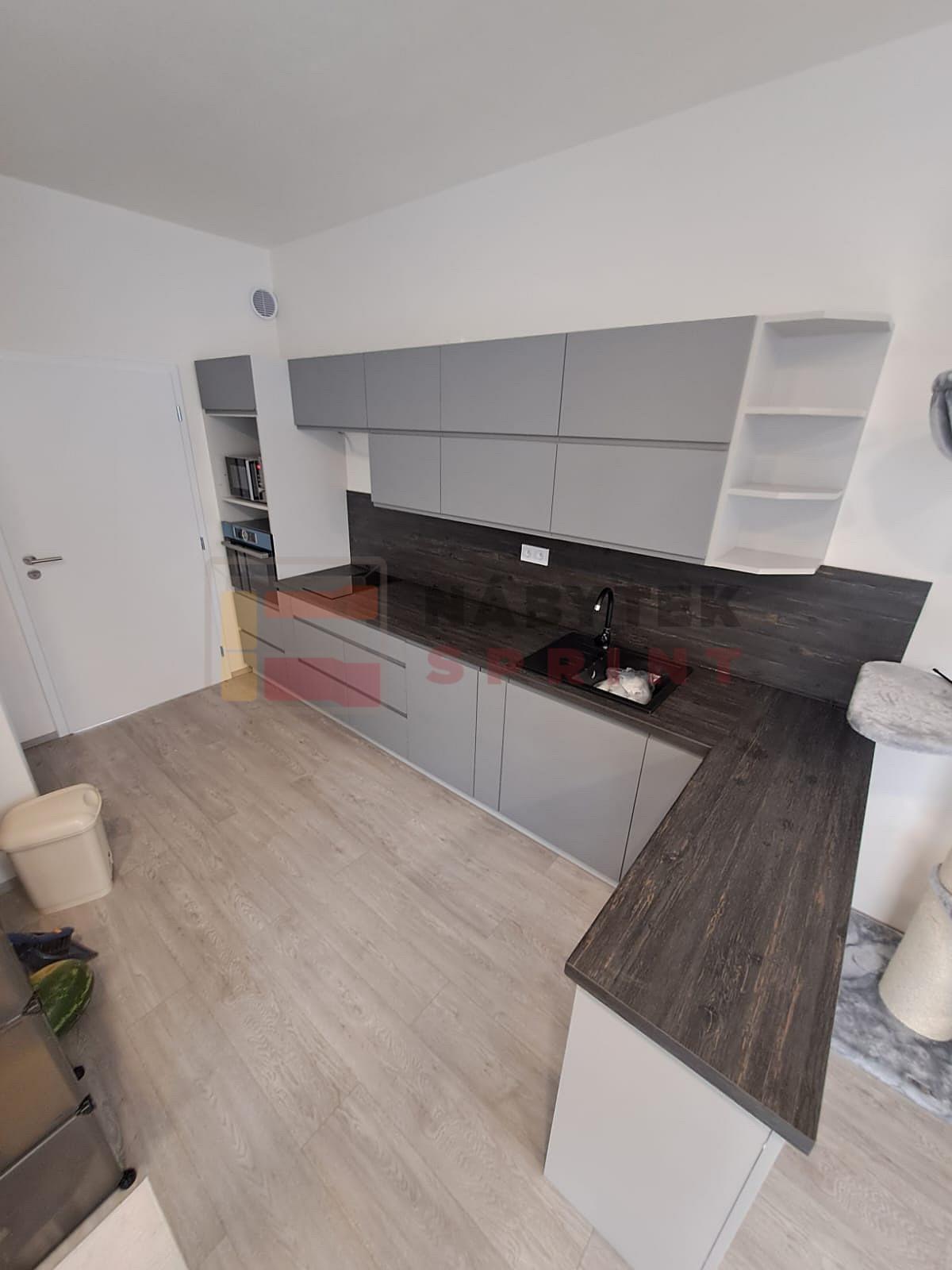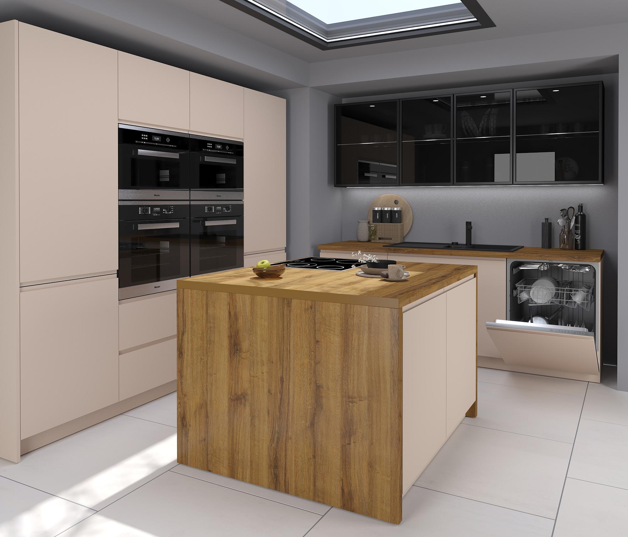Moderní kuchyňské linky s bezúchytkovými dvířky. Vybírejte z oblíbených dekorů dřeva, které můžete kombinovat s akrylovými dvířky v leském nebo matném provedení.
