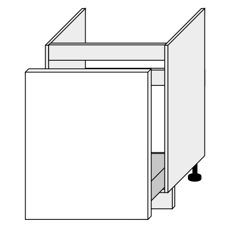 Dřezová skříňka má již z výroby připraven otvor v sololitových zádech pro odpady, atd. Taktéž postrádá poličku. Umístit dřez však můžete do jakékoliv jiné otevírací skříňky s požadovaným rozměrem. Otvor do zad se velice jednoduše vyřízne a polici prostě nepoužijete. Popřípadě si ji upravíte podle potřeby tak, aby šla použít.