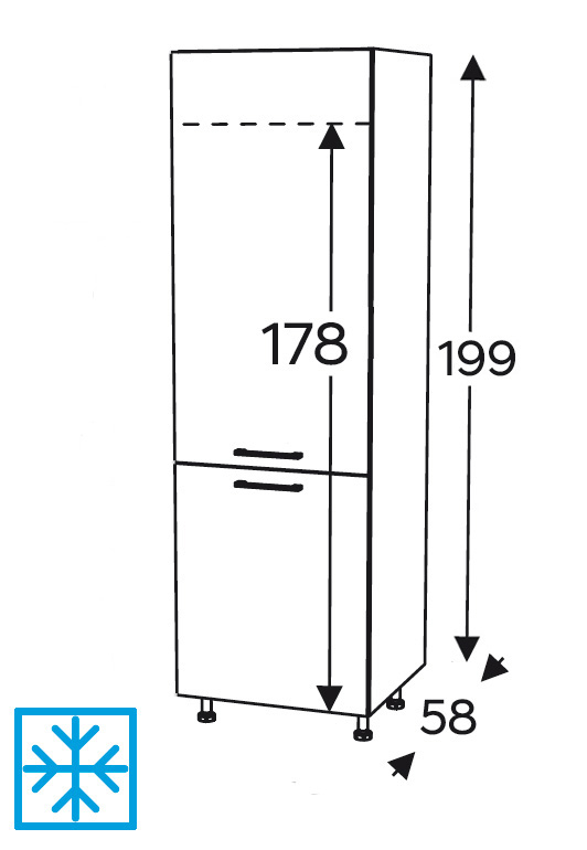 Výška nezahrnuje nožky (10 nebo 15 cm). Vnitřní rozměr ledničky: 178 cm