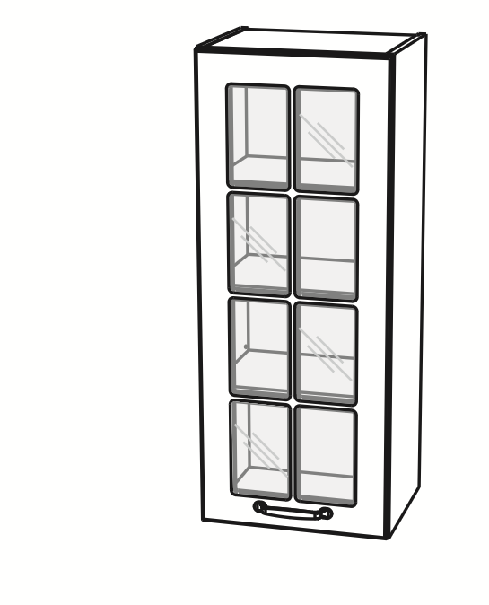 Korpusy jsou vyrobeny z kvalitní LTD desky o síle 16 mm. Police s nosností 15 Kg jsou důmyslně zabezpečeny proti samovolnému vysunutí. Záda jsou ze sololitu. Úchytky a kování jsou součástí balení. MDF dvířka 16 mm v různých barvách, s volitelným typem frézování a tlumeným dovíráním zdarma (kromě rohových skříněk).