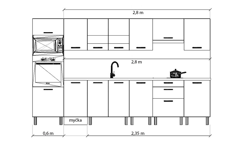 24. 2. poptáváte montáž kuchyně Mono (dodací lhůta 3–6 týdnů). Vše máte změřeno a přikládáte umístění klíčových prvků v kuchyni (odpady, elektřina, atd.)